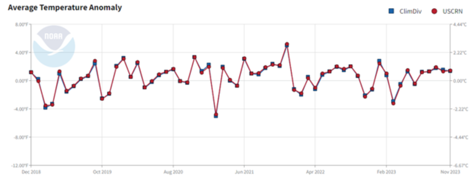 Over the last 11 months, temperatures across the U.S. have been running about 0.83°F above the 30-year average, with December being fairly warm across the contiguous U.S. overall. In fact, no single month was record-breaking, but regionally across the U.S., some areas could have seen record warmth.