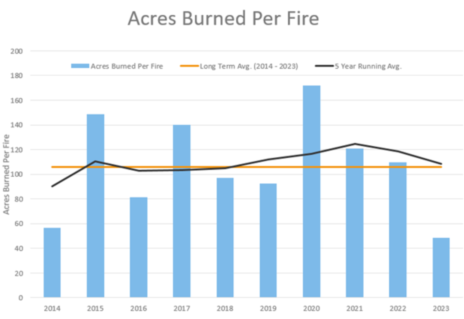 2023 proved that, once again, any area can be an extreme wildfire hazard area under the right conditions. The Lahaina, HI wildfire was one of only two U.S. major insurance industry loss events in 2023. The Lahaina fire caught the insurance industry by surprise. However, it was highlighted in our BMS Re summary that under the right conditions, the area could see high wildfire danger, which should not have been a surprise to the insurance industry. This fall, the southern states like Louisiana and the eastern U.S. saw several wildfires burning, typical during a dry fall period for the region. Besides Hawaii and a few fires in the Pacific Northwest, most of the wildfire attention was up in Canada, which made headlines by driving smoke over parts of the lower 48 states at times. However, this did not create any insured losses in the U.S. So, while Canada had a lot of wildfires, the U.S. had a below-average wildfire year, with the overall acres burned well below average, as shown in the chat below. This was likely a result of the much-needed moisture across the Western U.S that resulted in a drought-free California for the first time since September 2019.