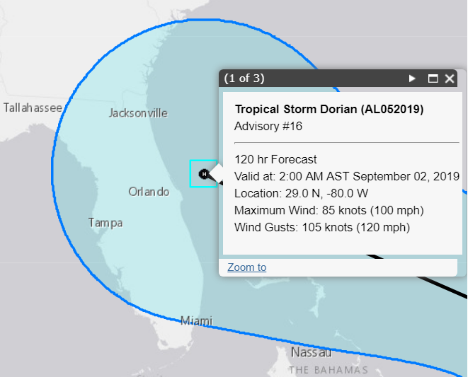 With Dorian potentially making landfall over a holiday weekend, the amount of lost revenue from hotel and restaurants has the potential to be higher, which could increase business interruption in some cases.