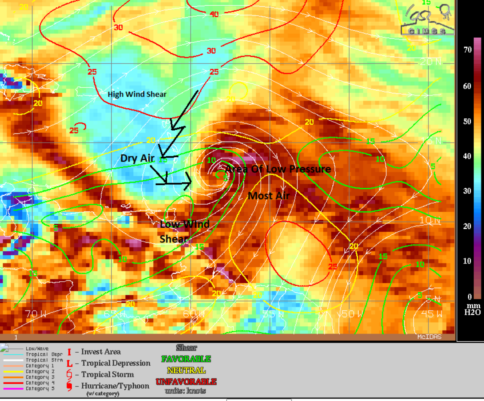 Land interaction from the various islands to the West over the next couple of days is another hurdle that can limit development. Lastly, if Invest 94L makes it over Puerto Rico and Hispaniola the other hurdle is wind shear from a large upper-level low near Florida that will be part of a cold front impacting the eastern part of the U.S. later this week. Wind shear is often a negative for weaker tropical waves as they move West.