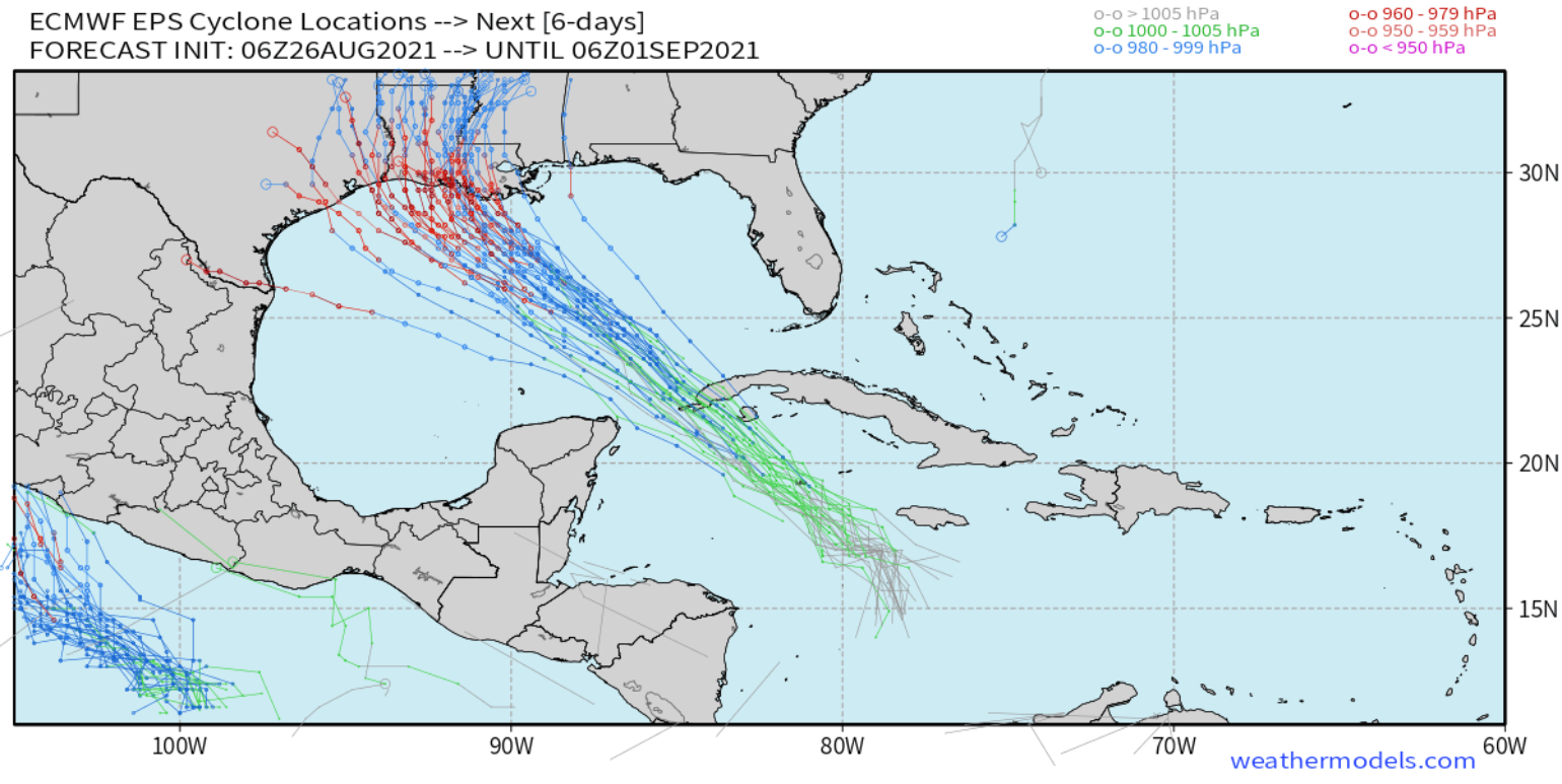 Given that potential Ida is still only a tropical depression and a relatively weak system, this will result in wild swings in future track guidance for the system as it tracks into the Gulf of Mexico. What we do know at this point is that most guidance has been trending to tracks to the East. This past weekend the forecast scenarios were focused on a Mexico or Southern Texas landfall. Over the last two days, the scenarios have been shifting North and East up the Texas coastline and most recently the focus has shifted further East towards the Louisiana coastline. This currently seems like the most likely scenario, which is unfortunate given the multiple impacts that occurred in Louisiana last year and many are still recovering. Again at this early stage in the forecast don't focus on the Center of the NHC track, but focus on the Cone as all possible tracks below are still likely possible.