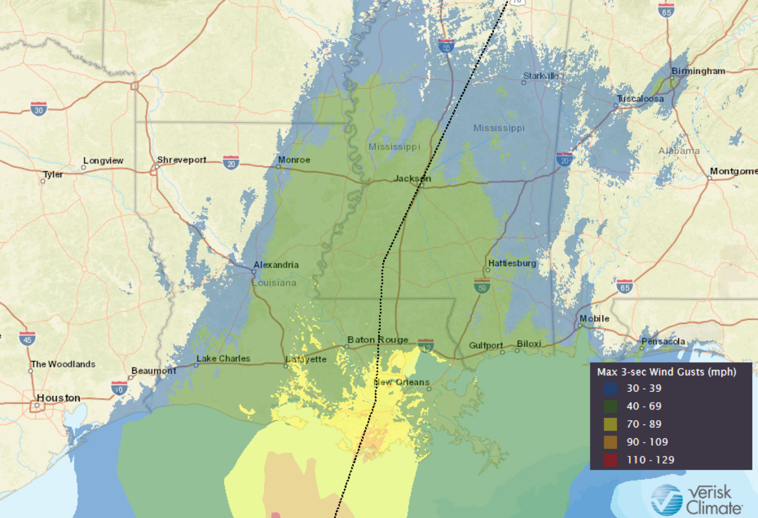 At this time, the insurance industry should expect at least a Category 2 hurricane at landfall along the central Gulf Coast where again, as we have seen, this season track will be critical. We're still several days away, and climatology would suggest that Delta should reach peak intensity over the Gulf and be somewhat weaker by landfall. However, Delta will be tracking much faster, and its fast forward motion will mean for much larger impacts inland away from the coastline.