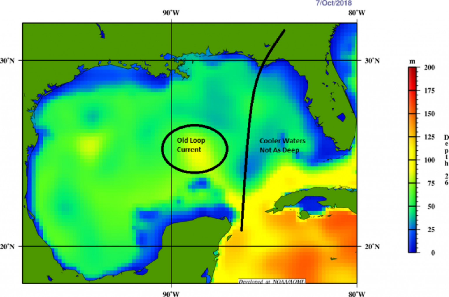 The good news is that it appears Michael will pass to the east of the last Loop Current eddy, which will limit some fuel for Michael as it tracks northward. But, this doesn’t mean that Michael won’t reach Category 3. It just indicates that the top-end intensity will be limited, as was observed with Katrina or even Harvey last year, which was fueled by an old Loop Current eddy.