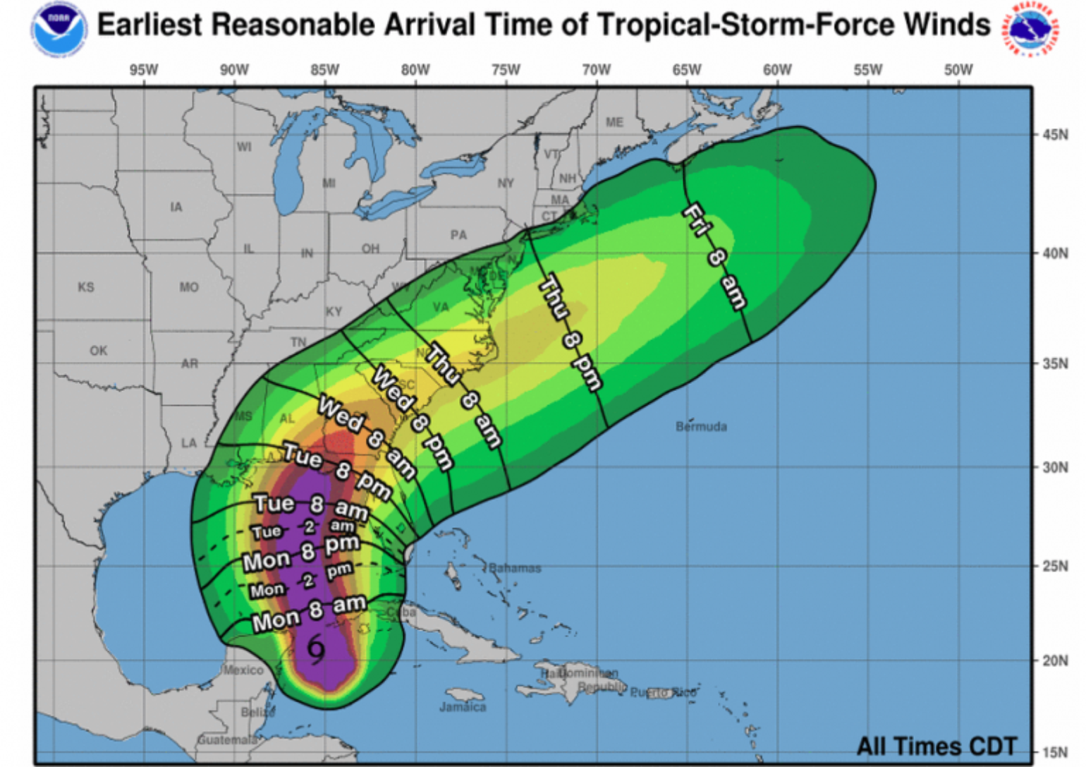 With a delayed autumn, all the leaves are still on the trees across a large portion of the southeast, which will exacerbate power outages. The highest wind gusts are expected along the coast from Destin, FL to Tayler and Wakulla counties and, as with Hermine, strong winds will have a big impact all the way into Tallahassee, which has the largest population area of the locations under threat, with the rest of the coastline being fairly rural.