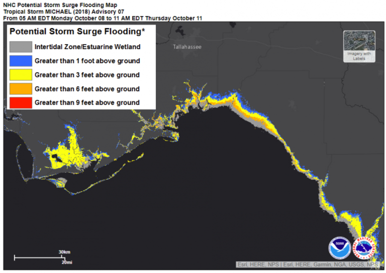 Michael’s impacts could be multiplied here since it is expected to be a major hurricane at landfall. The current model guidance suggests a landfall location between Miramar Beach to Apalachicola, FL, with the American GFS model suggesting a faster storm making landfall on Wednesday afternoon, while the European ECMWF model is predicting Thursday morning. However, regardless of timing, the insurance industry impact could be significant. The U.S. coastline between Indian Pass to Crystal River is one of the most vulnerable locations to storm surge. The current forecast suggests up to 11 feet of storm surge in this area, which could go even higher as Michael intensifies so don't be surprised if values above 11 feet start to show up in the forecast.