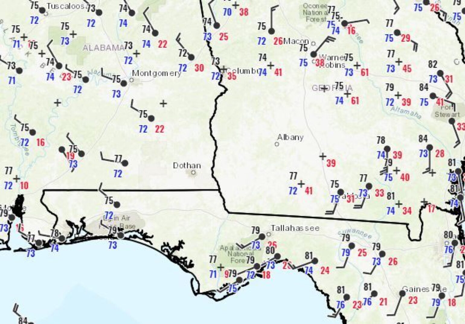 Much of the news coverage during landfall was in Panama City Beach, FL. However, the impact at this location was a picnic compared to what occurred just miles east and southeast down the coast where the eye of Michael made landfall. The heaviest damage appears to be in the towns of Callaway, Parker, Springfield, Mexico Beach, Port St. Joe and southeast Panama City, FL. This would suggest that the radius of maximum winds was relatively narrow at landfall (22 miles) and, thankfully, just inland from landfall, Michael tracked over a large sparsely populated area of mostly agricultural land and forest. However, that does not mean that some of the smaller towns or rural households did not see damage. For example, In Donaldsville, GA, which is 82 miles inland from Panama City, FL there was a recorded wind gust of 115 mph that still needs to be verified, but at least a 79 mph gust was reported . Blountstown, FL seems to have been hit particularly hard which is about 40 miles inland. The weather station in Albany, GA recorded a wind gust of 74 mph just before transmission failure occurred. In fact, to get an idea of where the worst of the damage might be, one just has to look at the lack of surface weather observations due to an absence of site reporting and power outages.