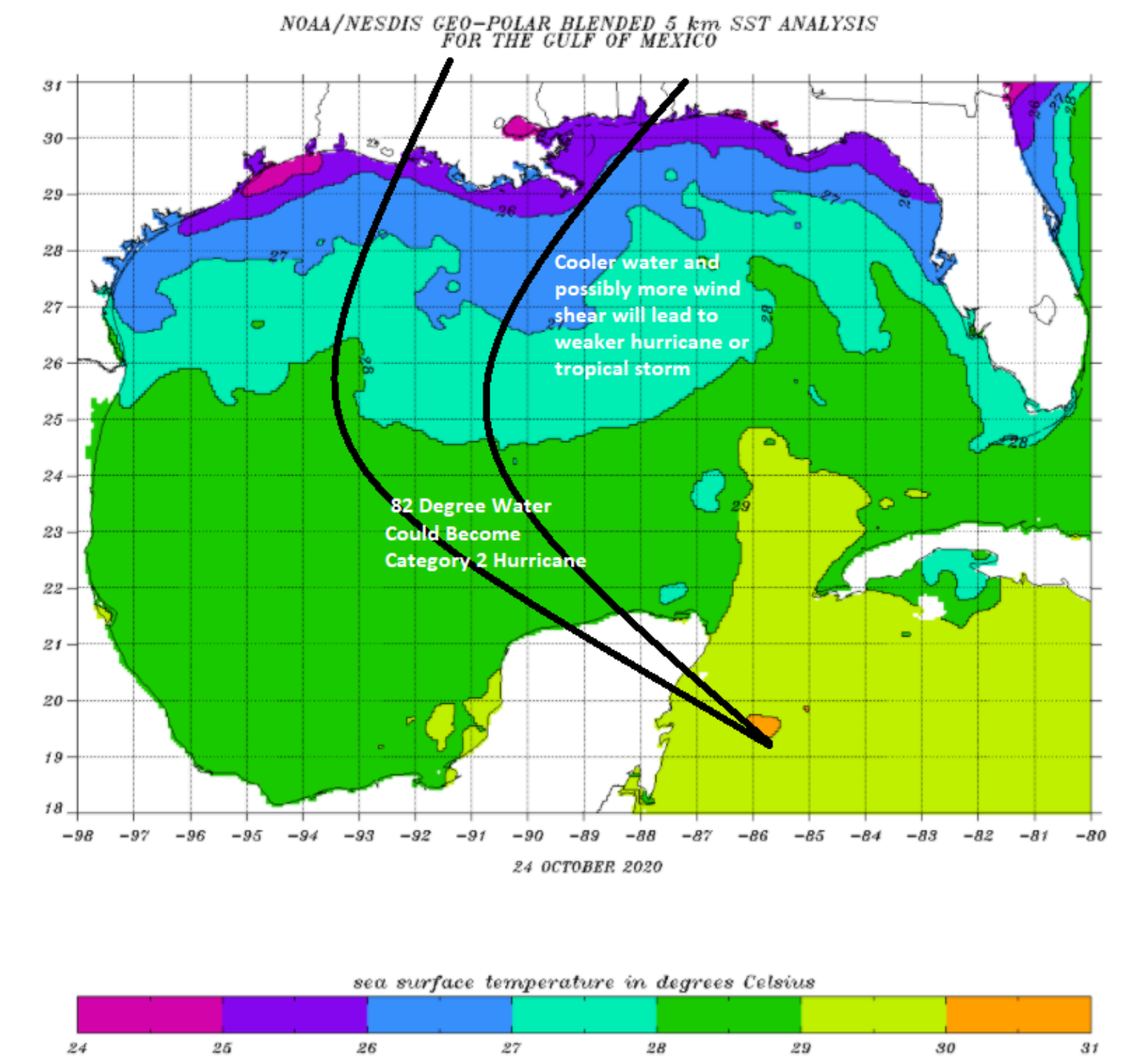 Zeta is strengthening this morning, and the model guidance suggests it will become a hurricane as it takes a very similar route that hurricane Delta did just a few weeks ago. However, unlike Delta, at this time Zeta should only be a Category 1 hurricane as it makes landfall south of Cancun, Mexico. This is still not good news for the heavily populated resort region of Mexico; however, Delta just 20 days ago showed that this area could handle a weak hurricane. However, it will still undoubtedly impact some of the resorts as auxiliary structures, trees, beaches which seem to take the most significant impacts from Category 1 winds. Long-term impacts on this region are not expected at this time.
