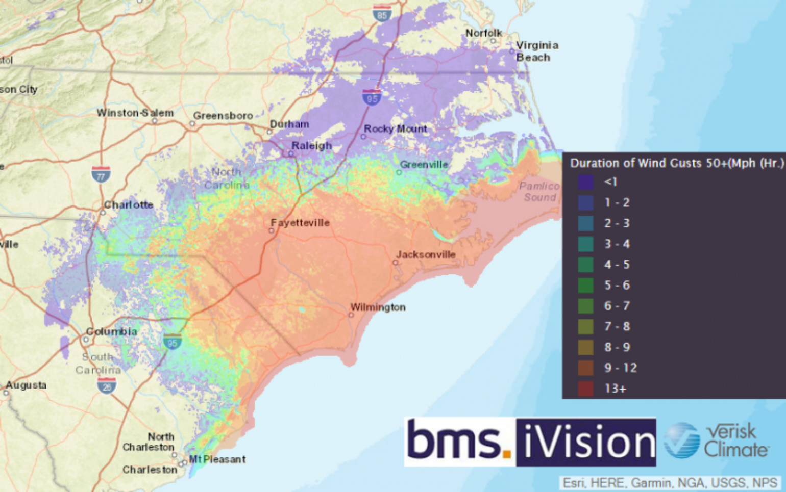 The National Geodetic Survey (NGS) has provided its first post-event aerial imagery, which can be found here. They still have yet to fly over the hardest hit areas, but it’s expected that these images will be added over the coming days. Other high resolution images can be found here.For many, the weekend winds were not the problem as Florence moved slowly across the Carolinas. At this link provides some of the official top wind gusts observed across the multi-state region. The top observed wind speed was 112 mph gust from a Buoy 30 miles south east of Topsail, NC. Onshore the highest wind gust continues to be 105 mph as observed at Wilmington Int'l. Airport.The wind gusts, however, may only be half of the problem as the long duration of strong winds will likely increase insured losses. A low level wind event of long duration can inflict just as much damage as a shorter and stronger wind gust event. Another thing to consider is that many of our building design codes and vulnerabilities built into the catastrophe models are developed around the gust. This will result in a bit of uncertainty around the loss estimates within the catastrophe models.