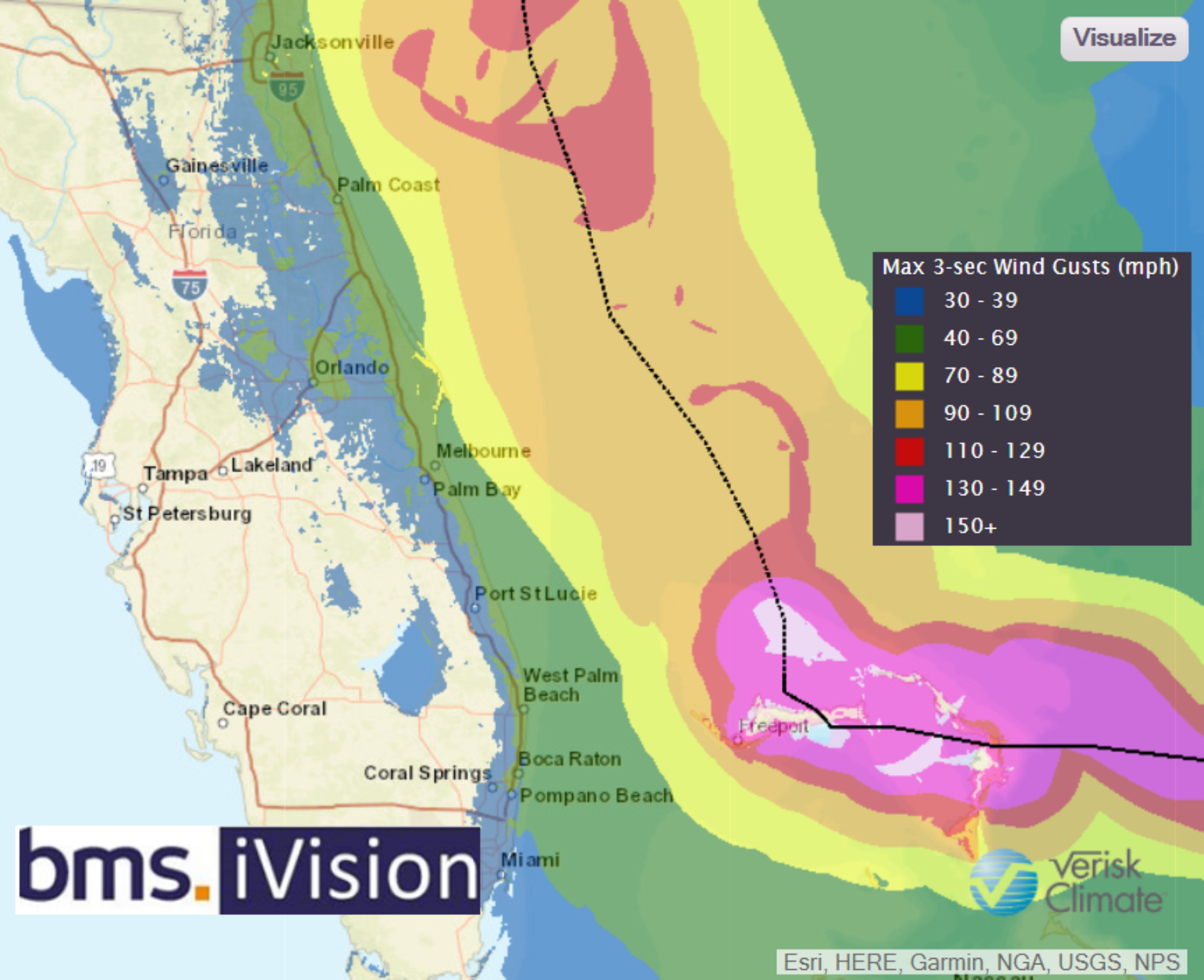 While there are many variables to consider when evaluating the potential outcomes of Dorian, one in particular may stand out. In 2014, when Category 2 Hurricane Arthur tracked over the outer banks of North Carolina, it became the only Category 2 hurricane thus far to make U.S. landfall and not result in an insured loss, according to Property Claim Services. So there is a chance that the resiliency and the nature of Dorian’s structure as it passes along the coast of the Carolinas may also result in minimal loss, but this notion will all depend on the storm’s track, just as it has along the Florida coastline. In addition to Arthur, hurricanes Ophelia in 2005, Irene in 1999, Gladys in 1968 and Donna in 1960 are all good analog events that could be used to help understand impacts from Dorian over the next 24 hours.