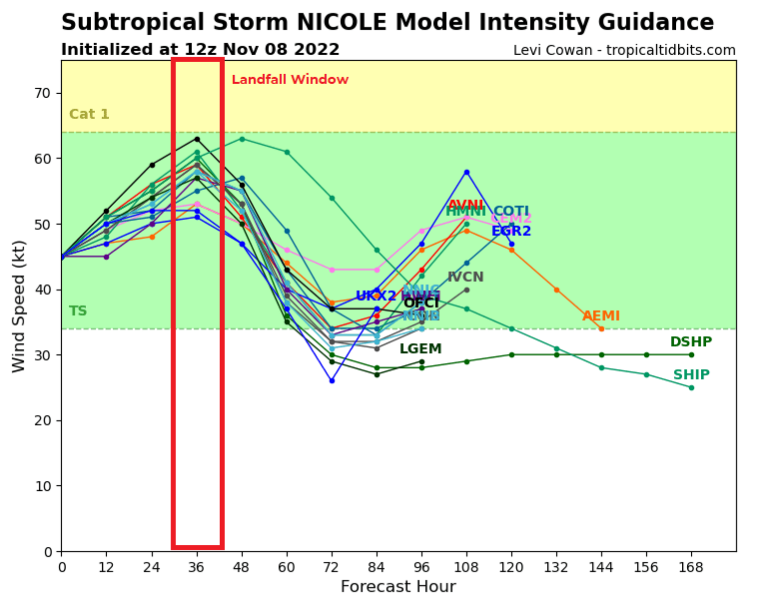 Nicole Forecast Intensity