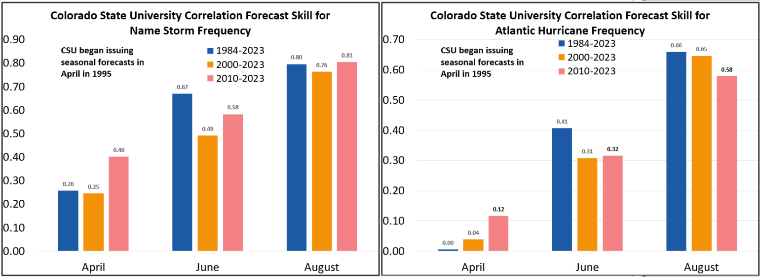 By now, you might have seen some eye-opening media headlines about the upcoming hurricane season: “Long-range forecasts suggest 2024 hurricane season from hell”. In fact, the industry-trusted source, Colorado State University, led by Dr. Philip Klotzbach, will not be issuing their forecast until April 4th. Even then, based on the April forecasts from CSU, they do not have the skill that the June or August forecasts have.