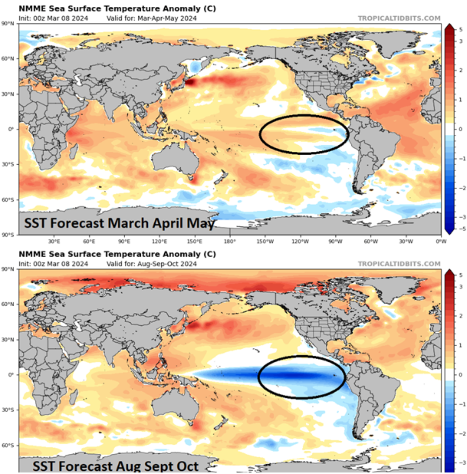 As mentioned, the Pacific Basin will be moving into a La Niña base state, allowing for less wind shear and possibly more named storm formation in the Atlantic basin.