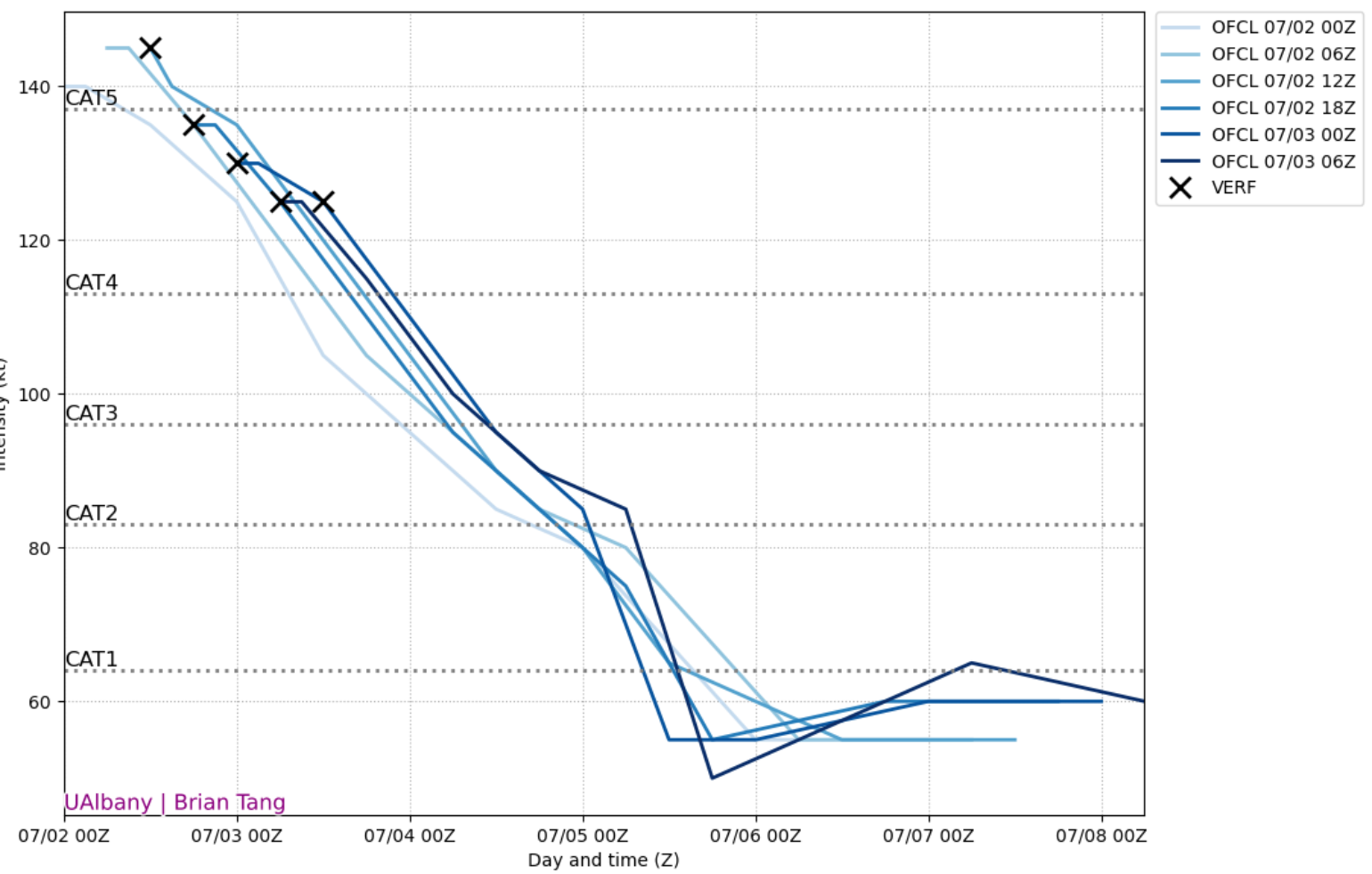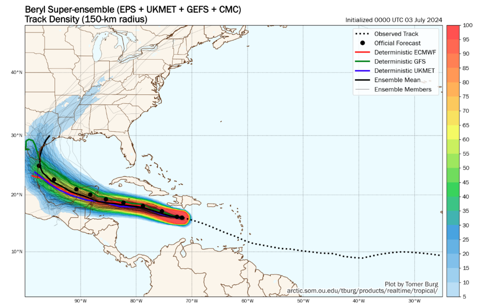 Future of Beryl Intensity and Track