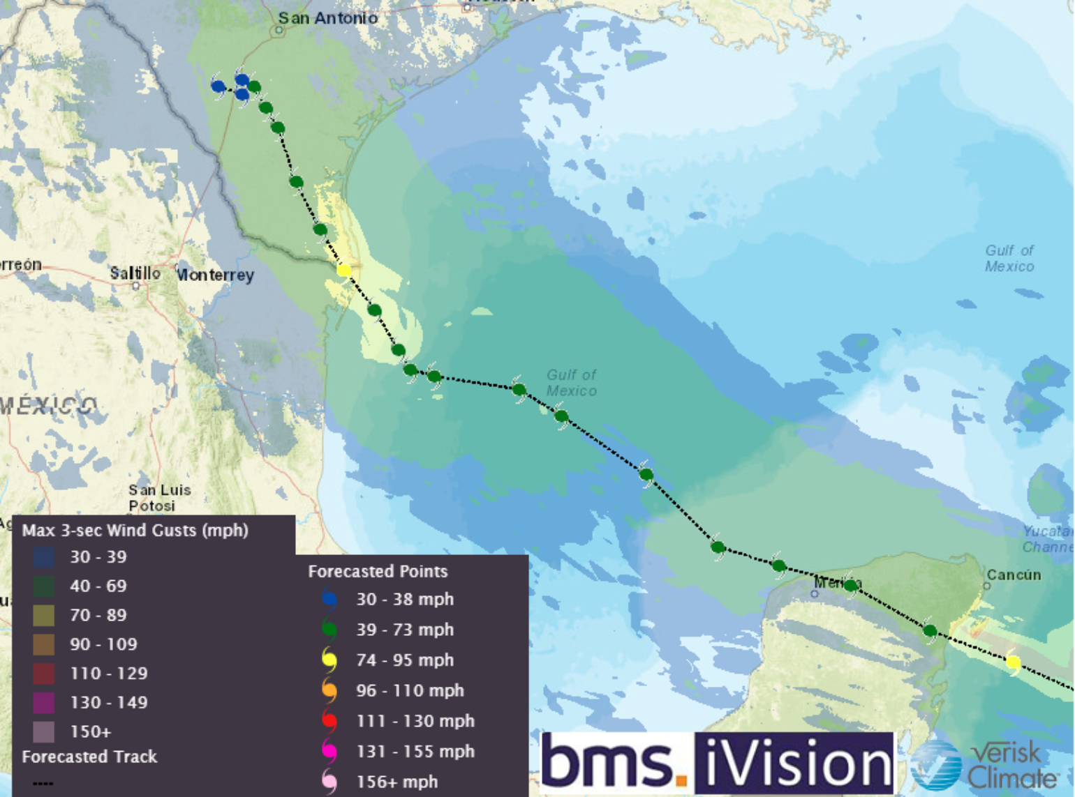 Insurance losses cannot be impacted at this time, but it is safe to say there will be impacts on the U.S. insurance industry. Along with the typical wind and storm surge damage highlighted with Alberto back in the middle of June, Beryl will have a footprint of heavy rainfall well inland along the east of its track early next week. This is a concern because the ground is quite moist from the spring rain events that impacted east Texas and western Louisiana earlier in May and June. It should be noted that Louisiana insurance industry impacts will be limited at this time, and this should be a Texas-only impact. Tomorrow there will be a much better idea on the severity of Beryl impacts to the Texas insurance industry.