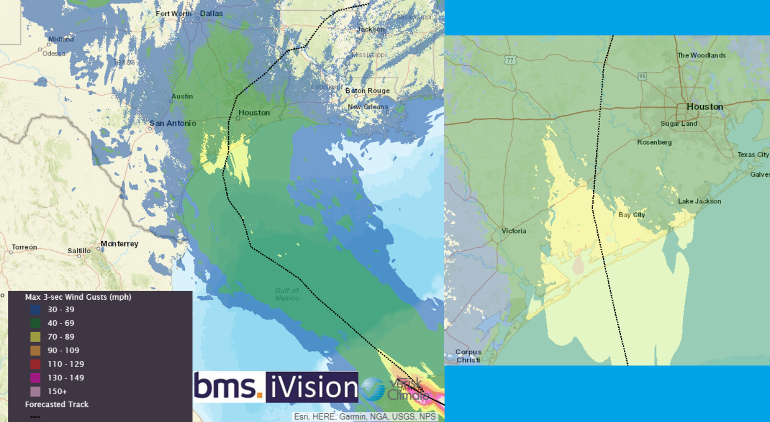 The strongest winds will be on Beryl's right side, as shown in the BMS iVision Verisk Respond wind swath in the image above. However, the insurance impacts on Louisiana will be negligible at this time.