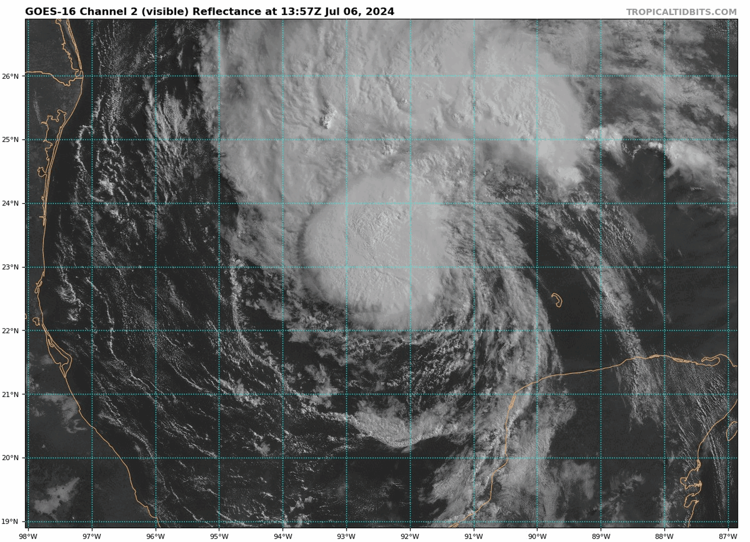 After traveling approximately 3,600 miles, primarily as a major hurricane, Beryl has transitioned into a somewhat disorganized tropical storm after encountering the Yucatan peninsula most of yesterday. The current satellite presentation is a far cry from its former glory as a category 5 hurricane around the Windward Islands.