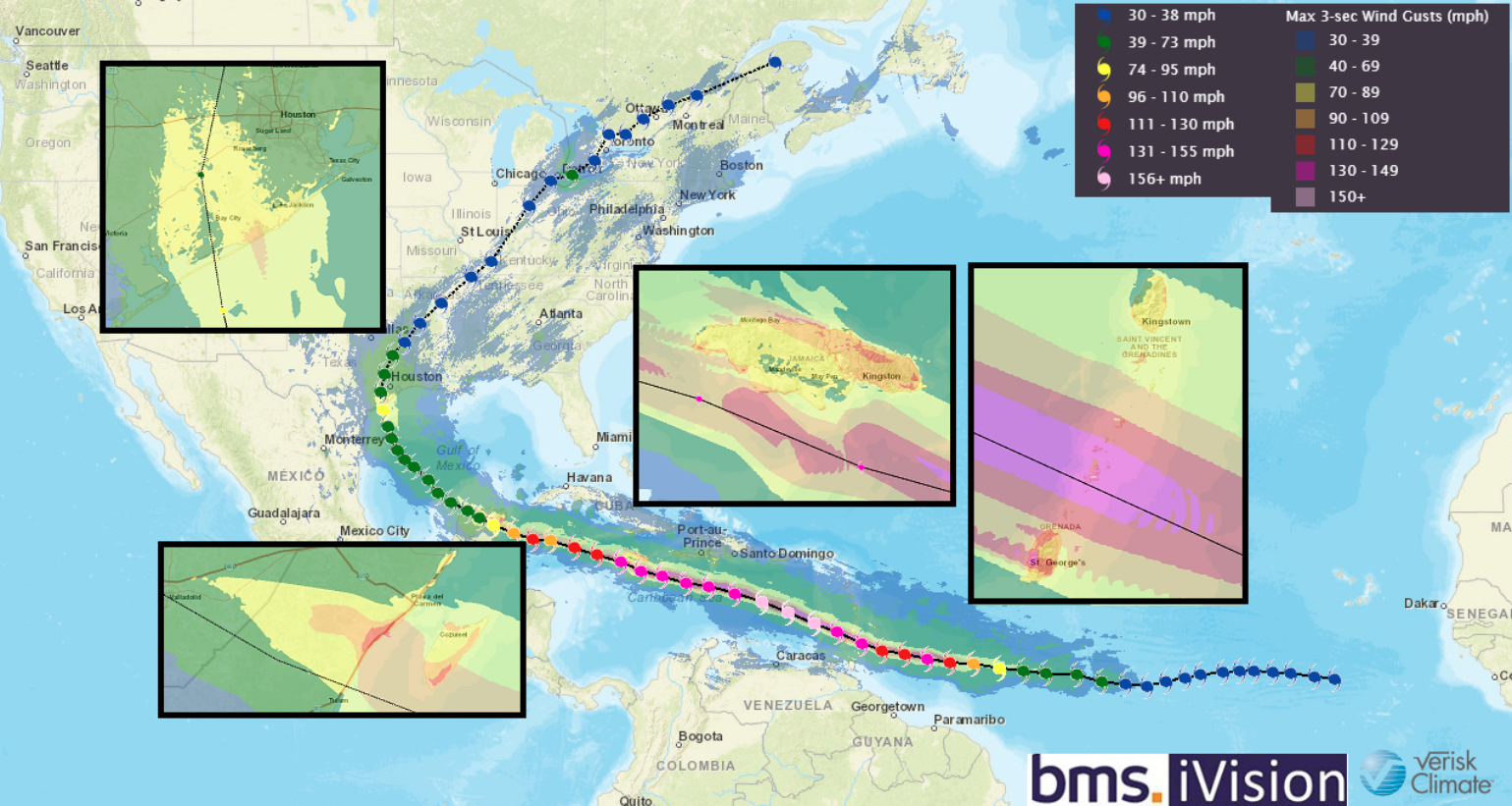 The bigger issue for the insurance industry might be that as Beryl intensified toward landfall, this wind field expanded. This has resulted in tropical storm-force winds in the Houston area, which is the fifth largest city in the U.S. with a population of just over 7 million. The question then becomes how insurance policies will respond. Overall, there are higher wind-only deductibles, and overall deductibles have been on the rise, with many homeowners’ policies increasing the mandatory minimum wind hail deductible to 2% of the dwelling amount.