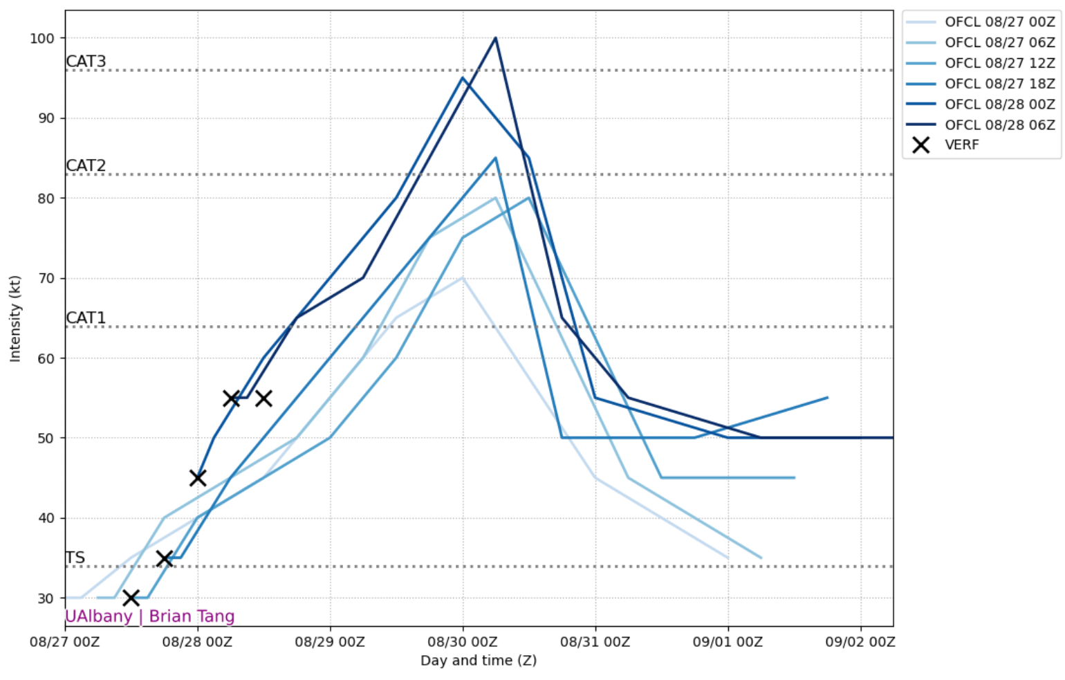 • The National Hurricane Center and forecast are following a trend of increased intensity at landfall;