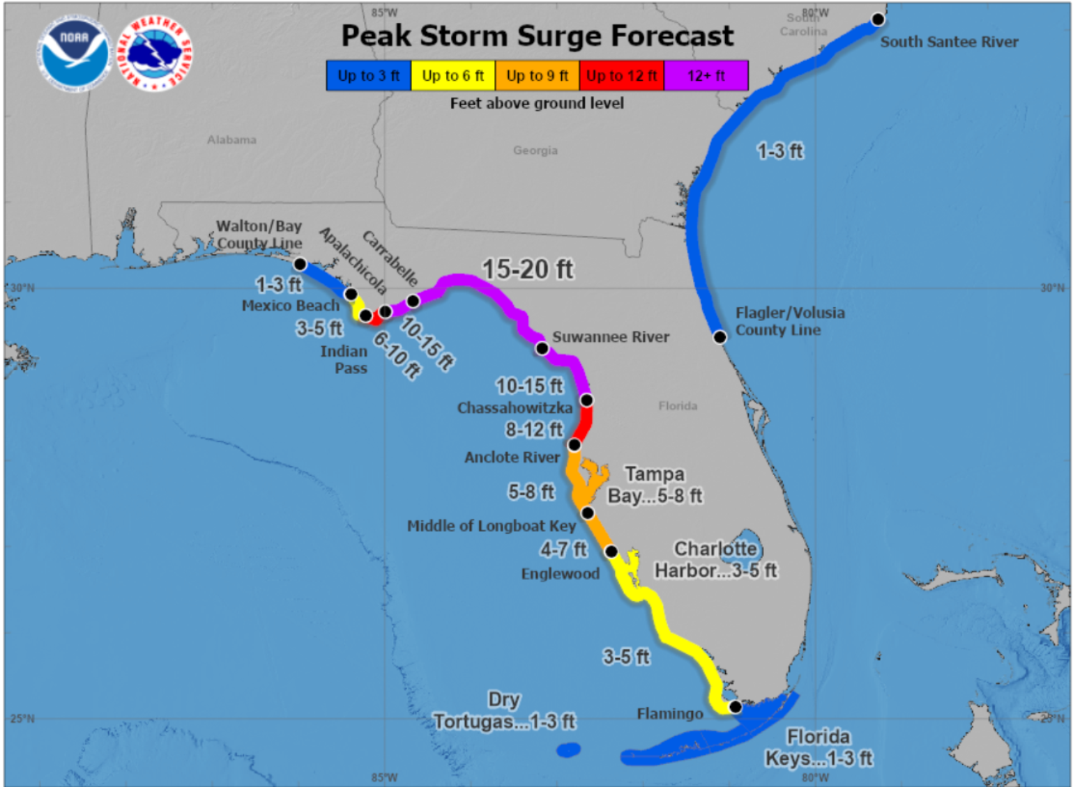 Here is a link to the National Hurricane Center's Potential Storm Surge Flooding Inundation Map