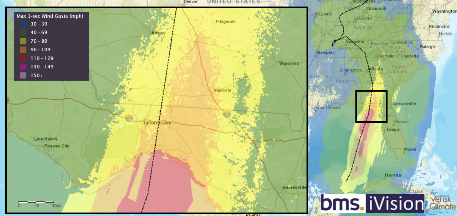 As with any storm of this magnitude, there will be considerable hype surrounding it. The media tends to amplify this, and the insurance industry should be aware of this pattern. However, it is also important to recognize that there are reasons to be less pessimistic. The insurance industry has come a long way in helping to build resiliency. This is not the area's first hurricane. As mentioned, the area has seen several hurricanes since 2016. Sure, they might not all be as strong as Helene, but Michael packed a punch, resulting in Tallahassee having wind gusts of 71 mph with high gusts lasting 12 hours. Tallahassee will be the key to the overall industry loss as the only central metro area threatened by high winds. On the current trajectory, the highest wind gusts will appear east of the city, with the town only experiencing wind gusts of 80 mph. But any shift to the West in the track will drastically increase insurance loss estimates. Higher wind speed in this older urban area with high tree density is still recovering from the May 10th tornado outbreak. Although Helene will have a large wind swath, there have been changes in policy terms and conditions to limit losses from lower wind speed events, particularly across the state of Florida, as it truly takes a catastrophic wind to cause insurance policies to respond. Right now, insurance losses should end up below $8B, with a likely range between $4 -$5.5B. Please be aware that any shift in the track toward the west, bringing it closer to Tallahassee, could result in higher losses. It cannot be emphasized enough that this is a predominantly rural area of the U.S. coastline, with limited coastal development exposed to the strongest winds. Just like Idalia made landfall in the same general area last year as a major hurricane, and according to the catastrophe risk model, this was one of the strongest hurricanes to make landfall to have such a low level of loss, and that was partly due to the rural nature of the landfall areas. Helene will likely fall into the same category: powerful hurricane but with reasonably low insurance industry loss.