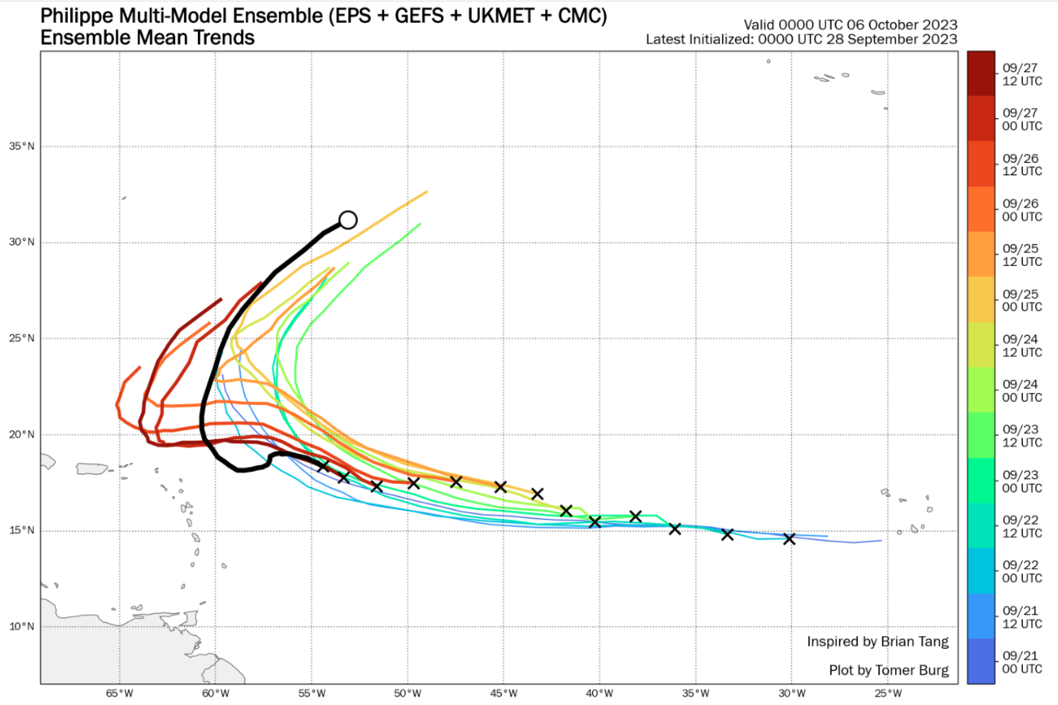 Though no medium-term threats exist to Florida or the continental U.S., the eastern Main Development Region still produces tropical troubles. Suppose you have noticed the National Hurricane Center forecast for tropical Storm Philippe instead of recuring east of Bermuda. The newest forecast takes the system near the Caribbean Islands over the next five days, a large forecast swing, so significant errors can still occur with named storm forecasts.