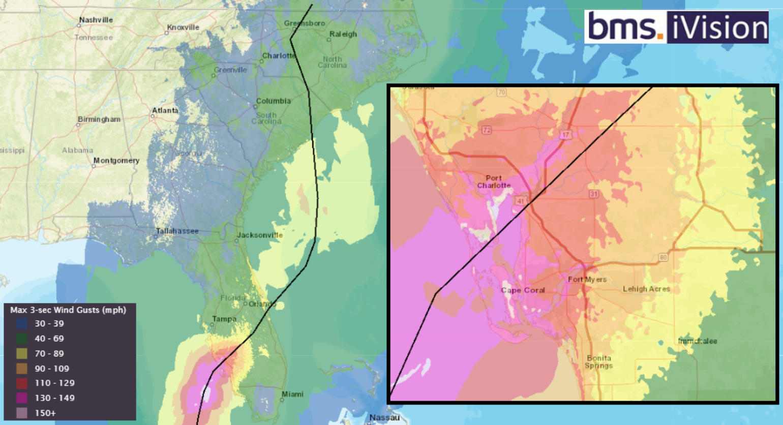 BMS iVision clients can still go back and look at the detailed wind swath of Hurricane Ian in our extensive historical catalog, which suggests areas from Sanibel Island through Port Charlotte and Punta Gorda experienced peak wind gusts between 150-160 mph. These gusts fall just below a design-level wind event per the modern Florida Building Code, which is currently set at a 1 in a 700-year windstorm. Using these past historical events is great for what-if scenarios as carriers shift around their exposure to limit future losses or move into the impacted area to take on additional market share now that many of the structures are being rebuilt to a higher standard.
