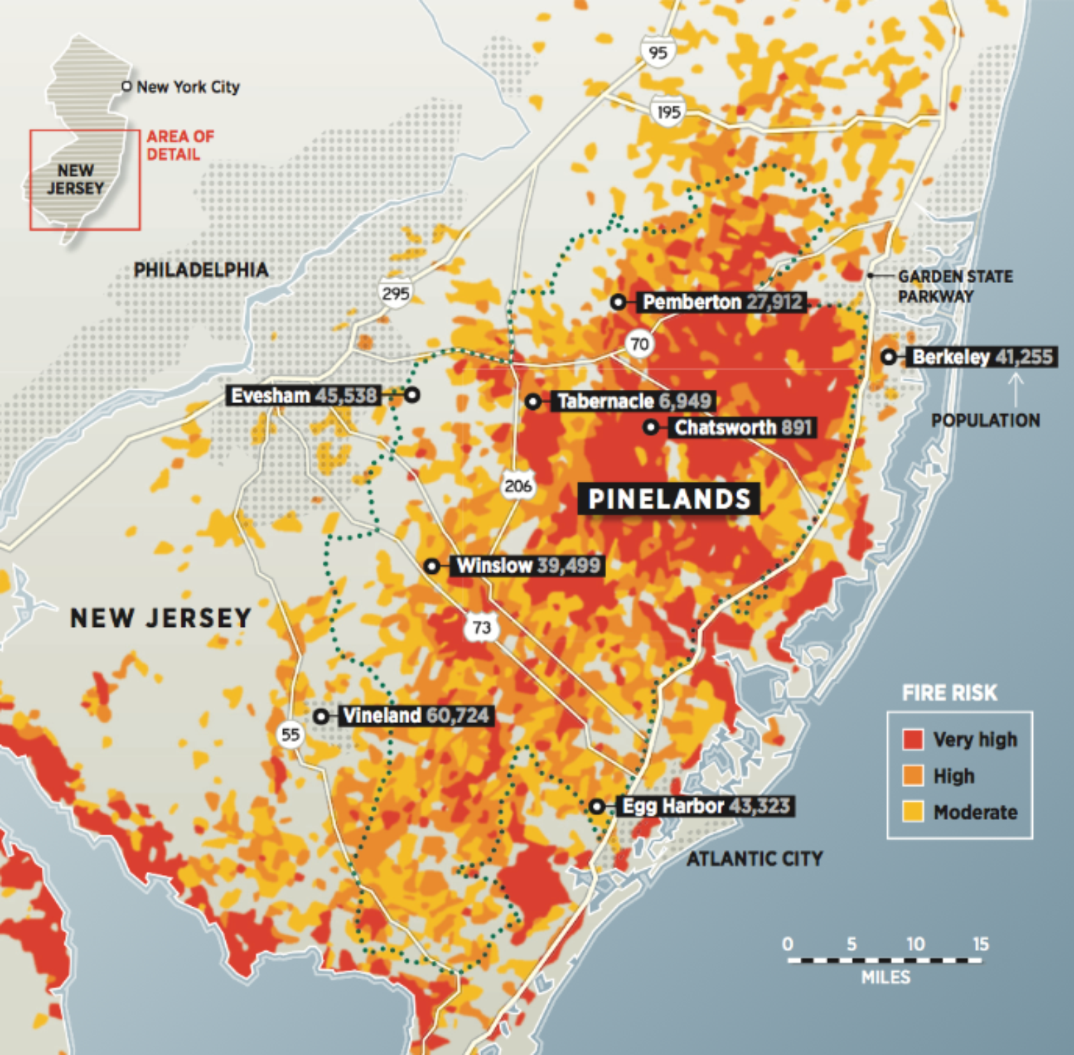 The insurance industry may also want to consider analyzing areas outside of the western U.S. that could become the next Gatlinburg, Tennessee. For example, the 1.1 million acres of Pine Barrens in New Jersey, which is mostly rural despite the proximity to the sprawling metropolitan cities of Philadelphia and New York City, could result in a major insurance industry loss. There are vulnerable locations along the wildland-urban interface where fires are common. At some point, the weather conditions will be right to create a worst-case scenario, which could impact towns like Tabernacle or Barnegat Township in New Jersey. Thankfully, the peak of the wildfire season in New Jersey is during the spring months.